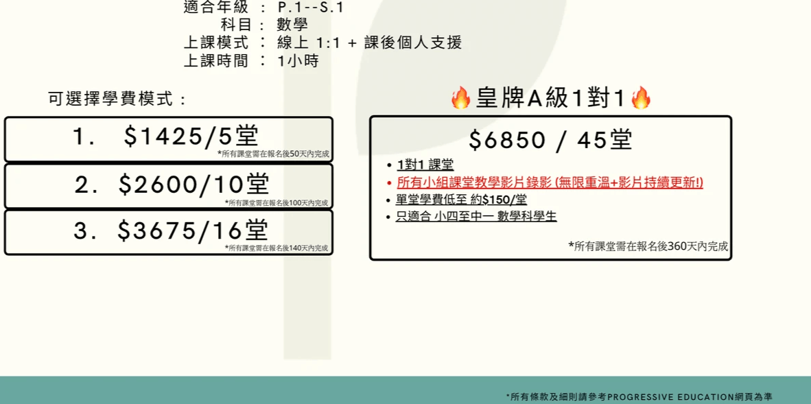 1對1 學費付款